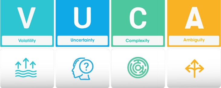 VUCA es el acrónimo que se utiliza para describir aquellos entornos caracterizados por la volatilidad, la incertidumbre, la complejidad y la ambigüedad. Este término procede de las siglas de las palabras inglesas Volatility, Uncertainty, Complexity y Ambiguity